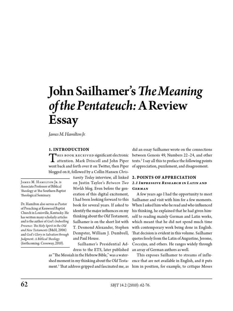 John Sailhamer's The Meaning Essay of The Pentateuch A Review PDF