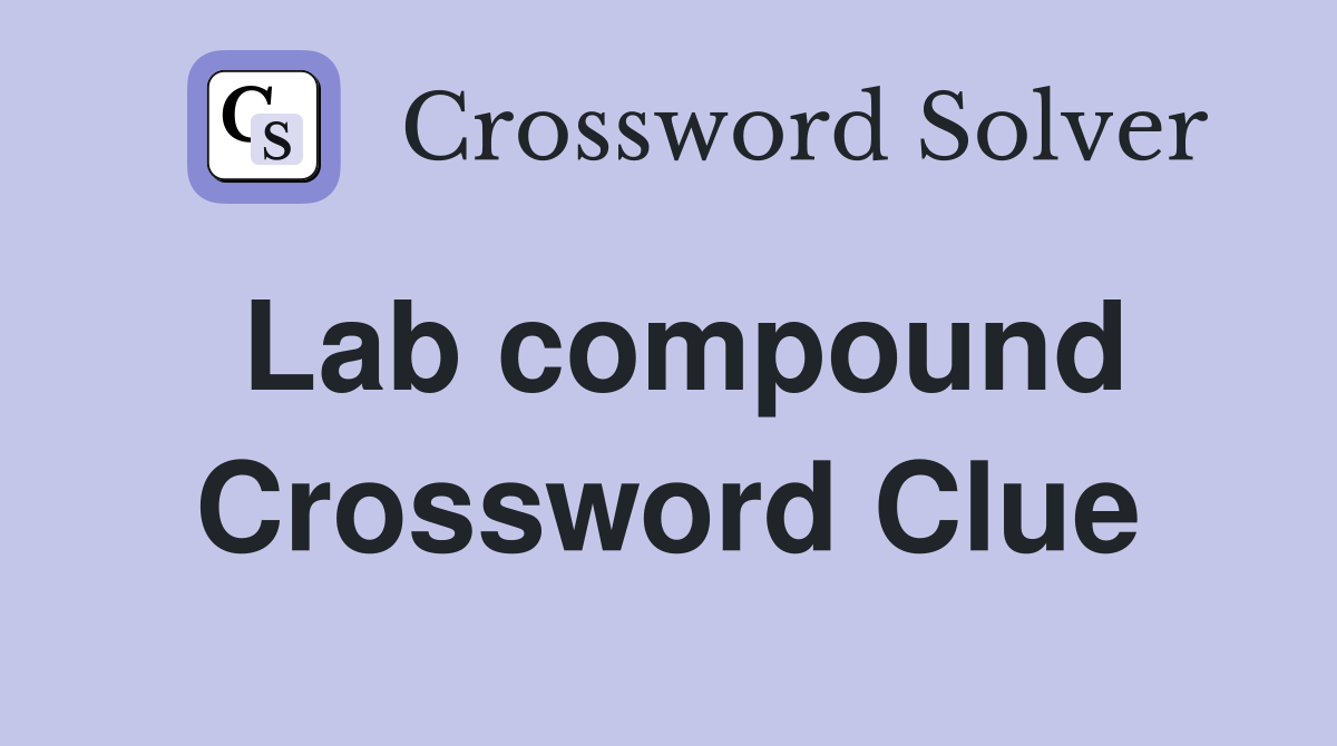 Find two possible answers for the crossword clue lab compound: The crossword solver found 30 answers to lab compound (4), 4 letters crossword clue. The crossword solver finds answers to classic. Search for crossword clues found in the daily celebrity, ny times, daily mirror,. We will try to find the right answer to this particular crossword clue.