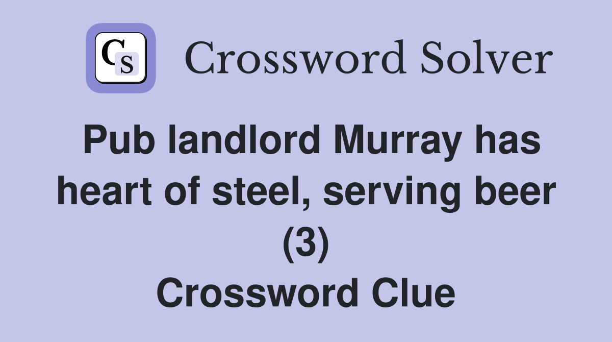 Pub landlord Murray has heart of steel, serving beer (3) Crossword