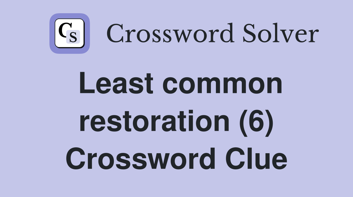 Least common restoration (6) Crossword Clue Answers Crossword Solver