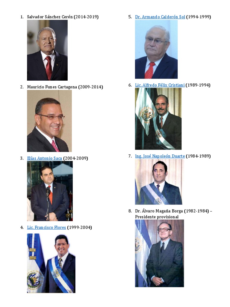 Presidentes de El Salvador Fotos y Periodo PDF El Salvador Jefes
