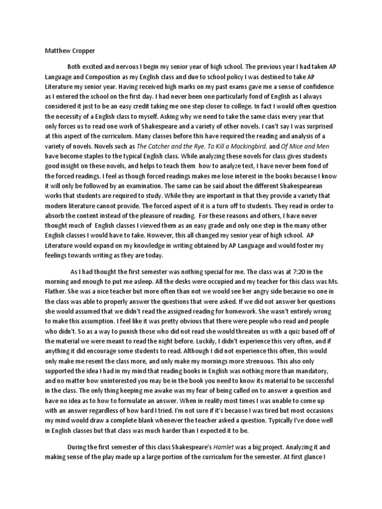 Literacy Narrative My Development In Reading And Writing [Essay