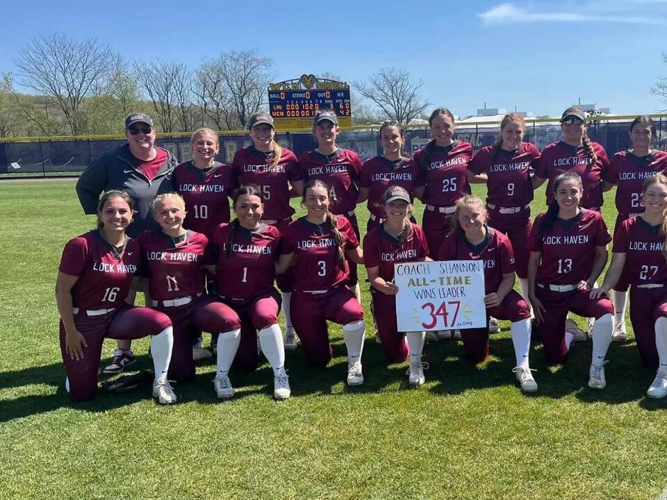 Kelly Shannon sets Lock Haven softball wins record, Bald Eagles split