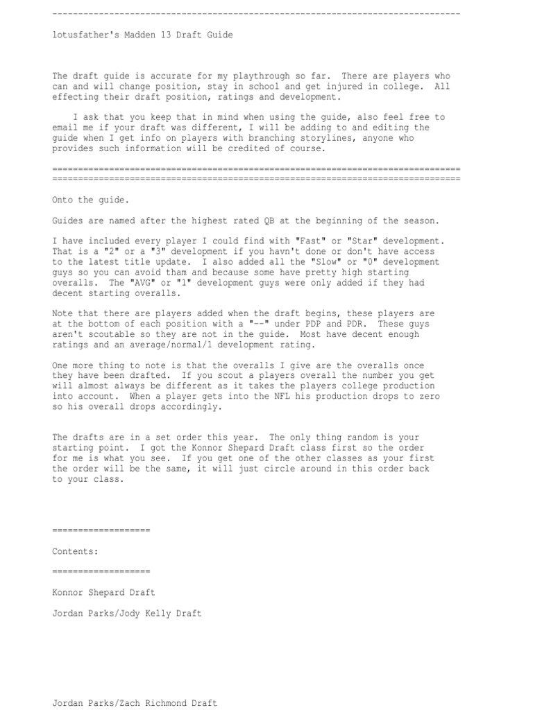 Madden 13 Draft Guide PDF Sport Variants Positions (Team Sports)