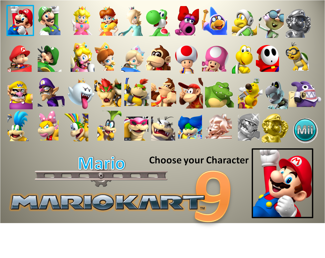 proposed mk9 roster. look in coments to see alt costumes. r/mariokart