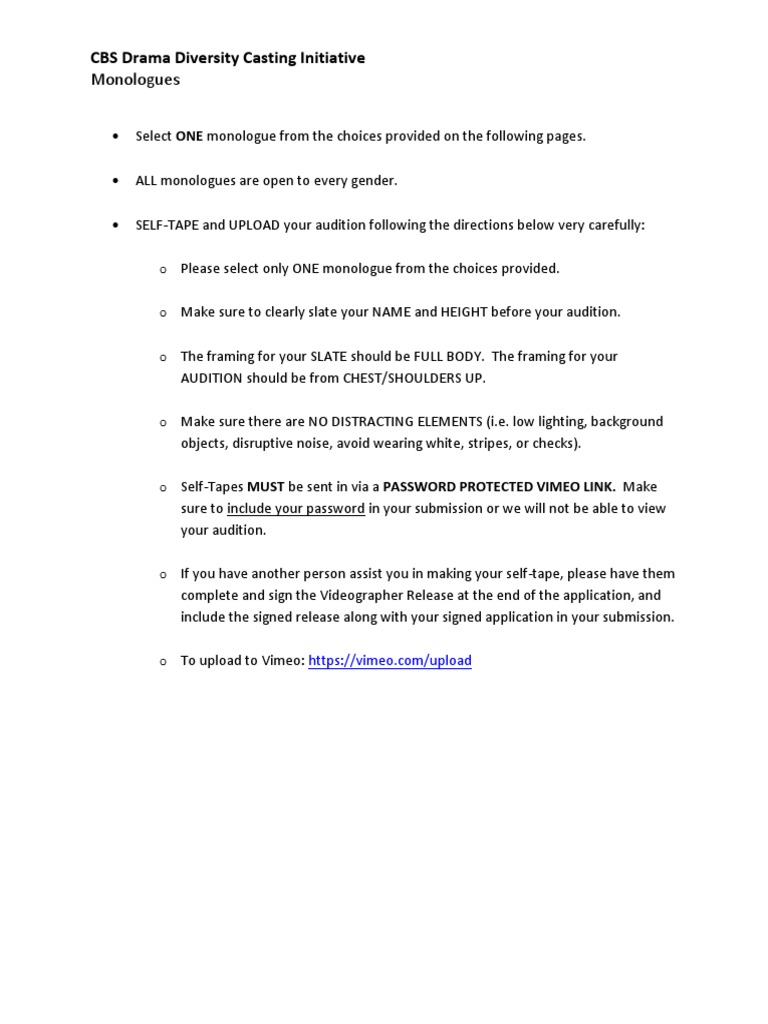 Beginner and Experienced Actors! Upload Video Monologues to Win 100