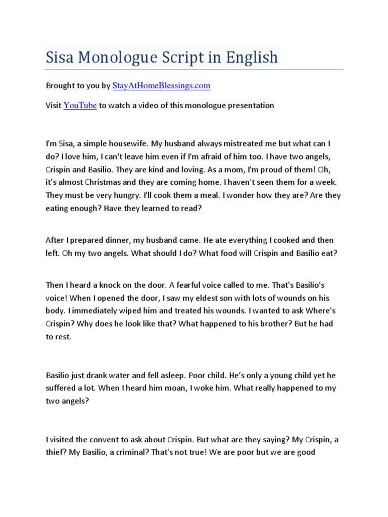 SIsa Monologue Script in English PDF