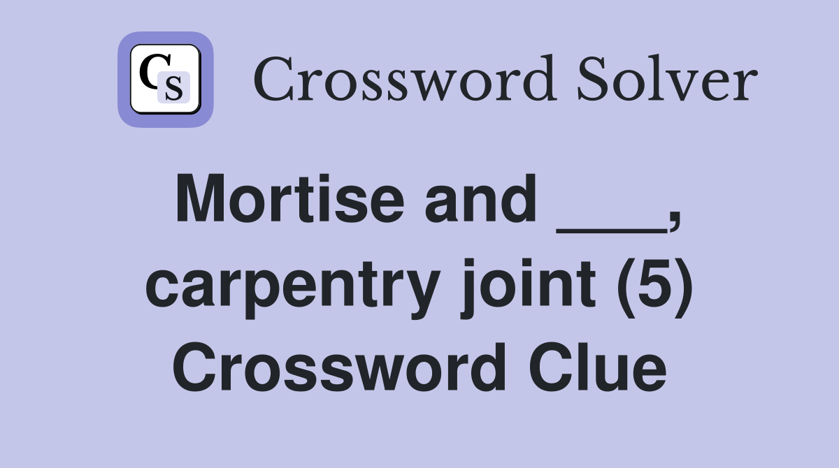 Mortise and ___, carpentry joint (5) Crossword Clue Answers