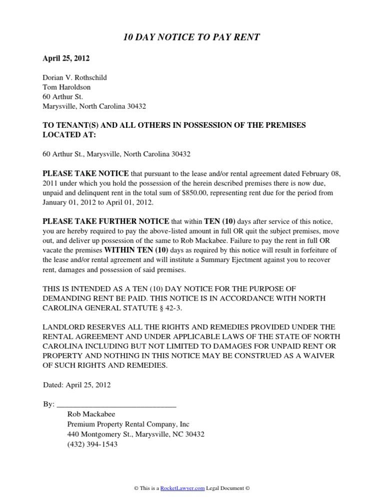 Eviction Notice Template North Carolina