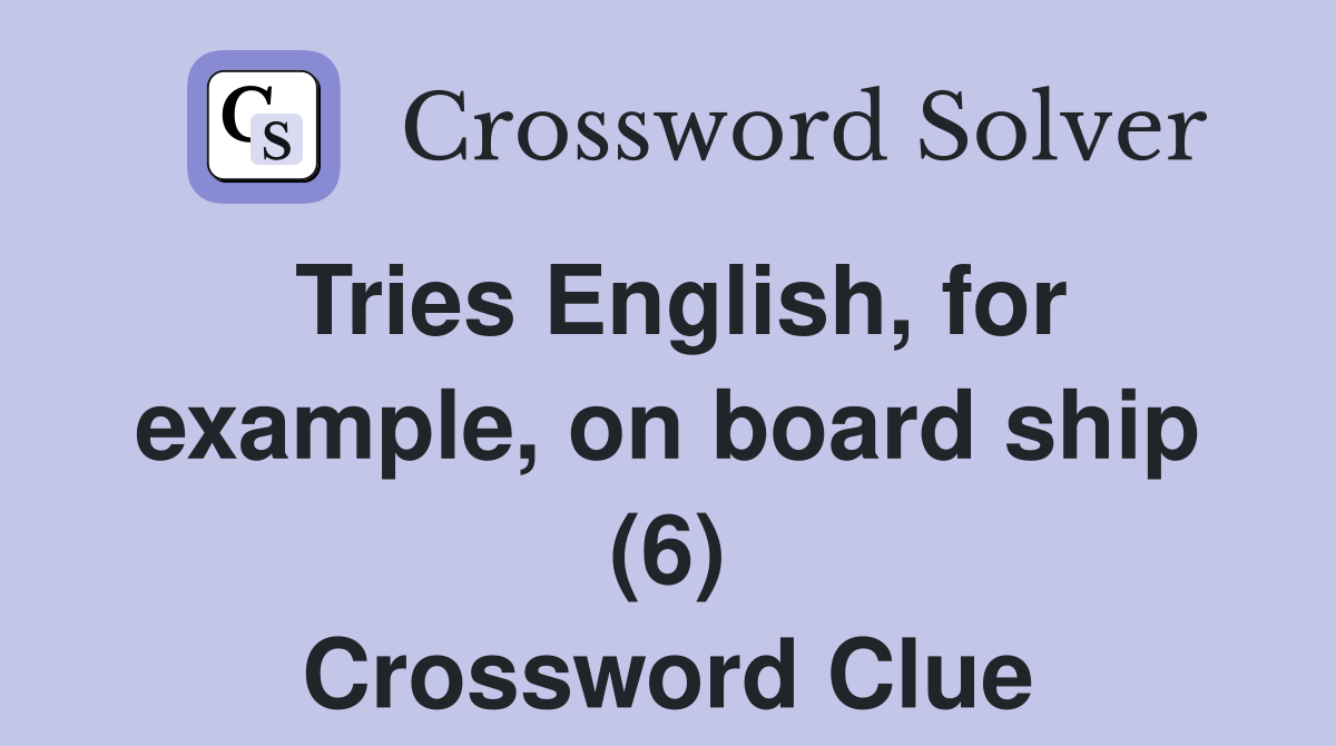 Tries English, for example, on board ship (6) Crossword Clue Answers