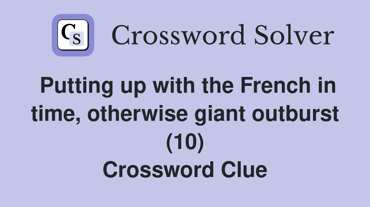 The crossword solver finds answers to classic. Find out what outburst means in crossword puzzles and see the possible answers. Here is the answer for the crossword clue outburst (7) last seen in puzzler puzzle. Today's crossword puzzle clue is a quick one: We have found 40 possible answers for this clue in.