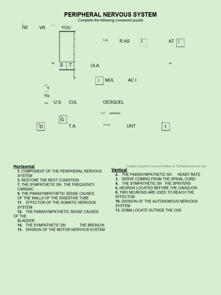 Peripheral Nervous System Crossword PDF PDF