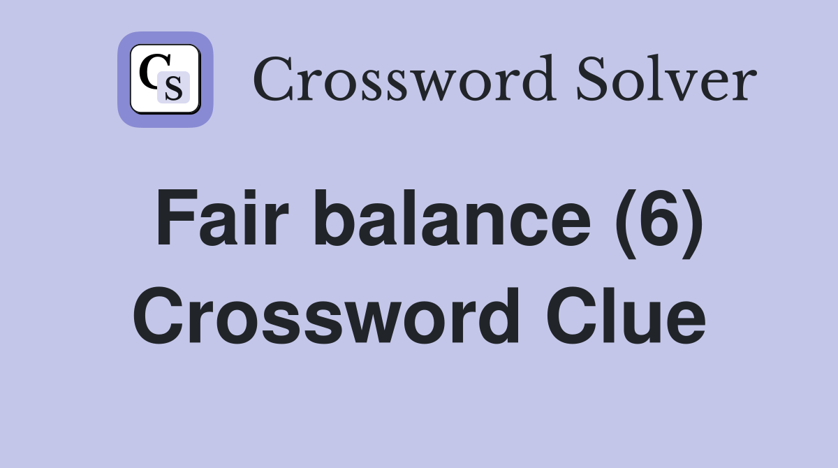 Fair balance (6) Crossword Clue Answers Crossword Solver