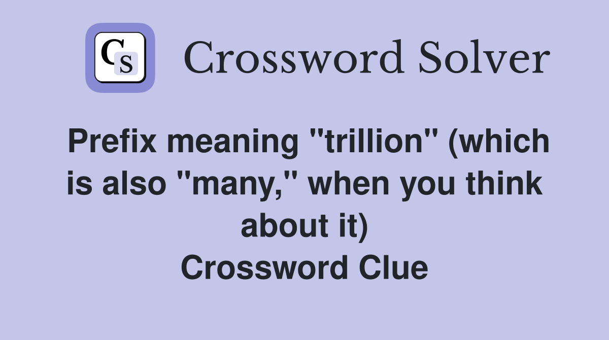 Prefix meaning new crossword clue. The crossword solver found 30 answers to prefix meaning new, 3 letters crossword clue. We have found 40 possible answers for this. If you're looking for help with the prefix meaning new clue in daily themed crossword, we have the answer to assist you. Please find below the prefix meaning new crossword clue answer and.