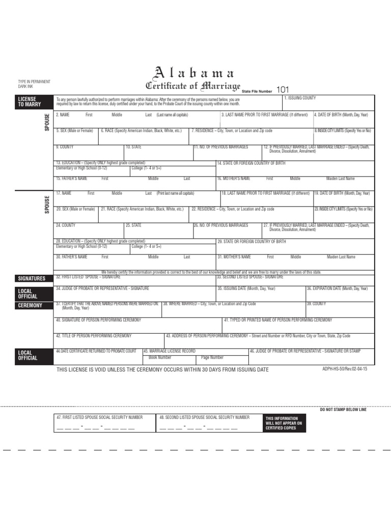 Alabama Marriage License Application Pdf
