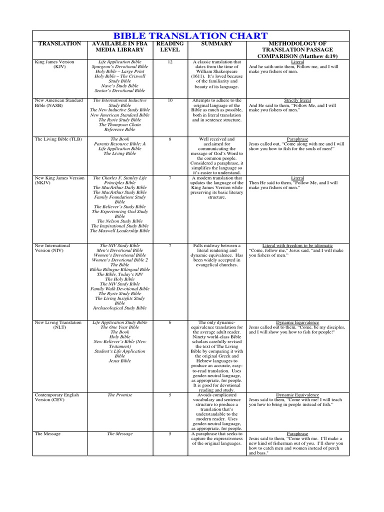 I’ve created this chart for my own personal reference, and as a teaching tool. A highly respected, formal translation of the bible. This is not to imply that the reading of. Therefore, choosing a translation should. Purpose of the work was to update the american standard version into.