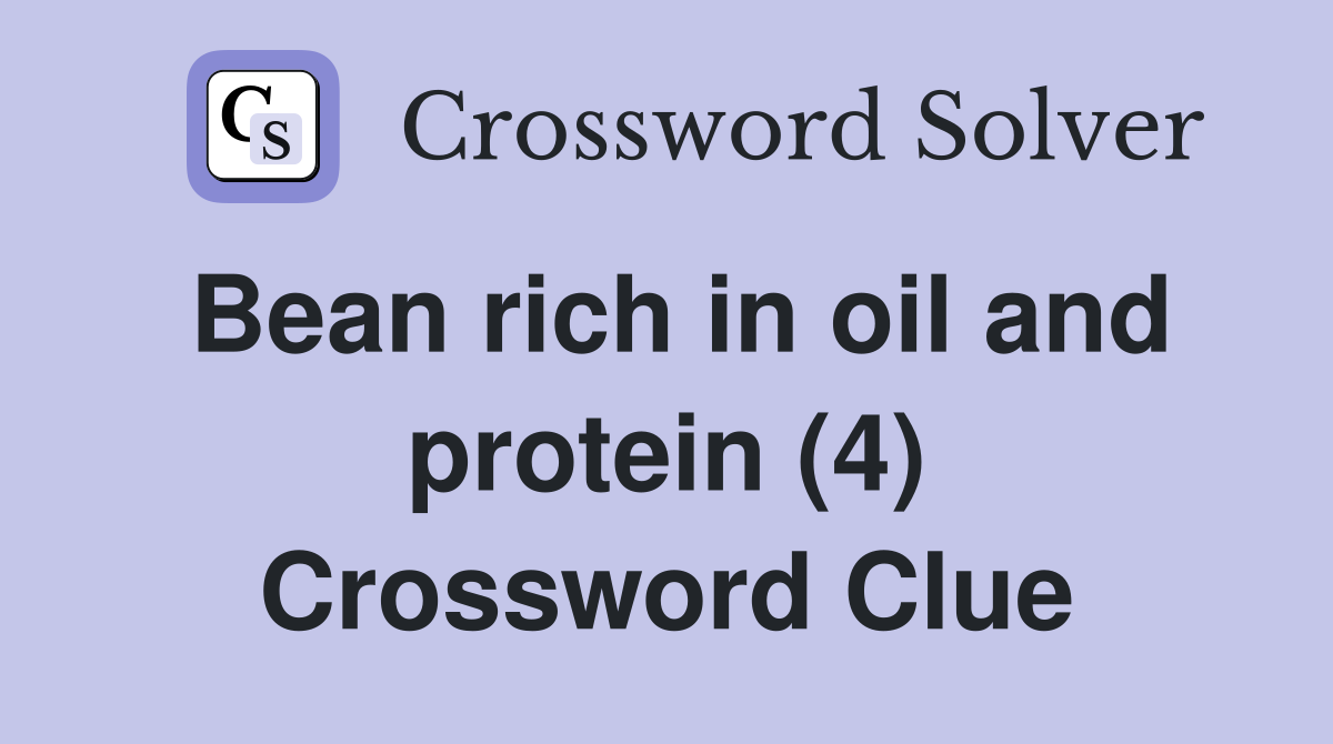 Bean rich in oil and protein (4) Crossword Clue Answers Crossword