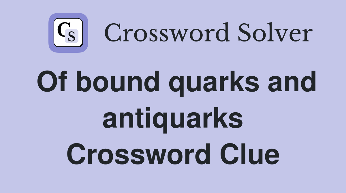 Of bound quarks and antiquarks Crossword Clue Answers Crossword Solver