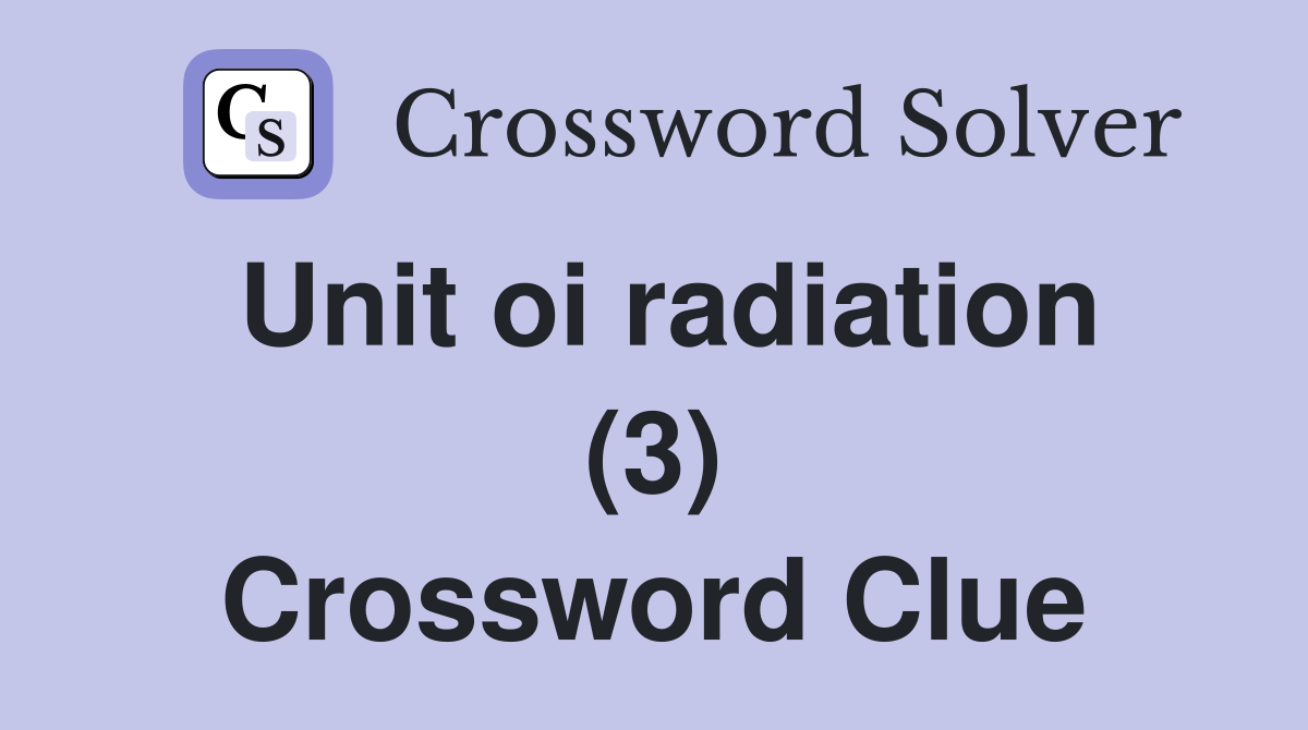 Unit oi radiation (3) Crossword Clue Answers Crossword Solver
