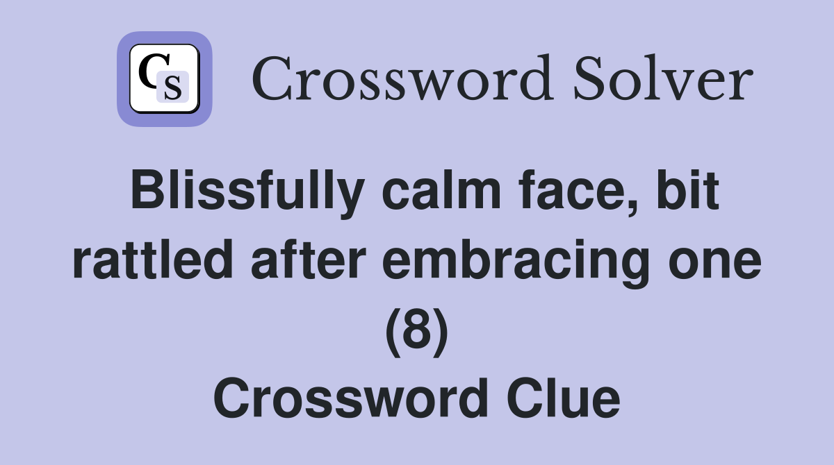 Blissfully calm face, bit rattled after embracing one (8) Crossword