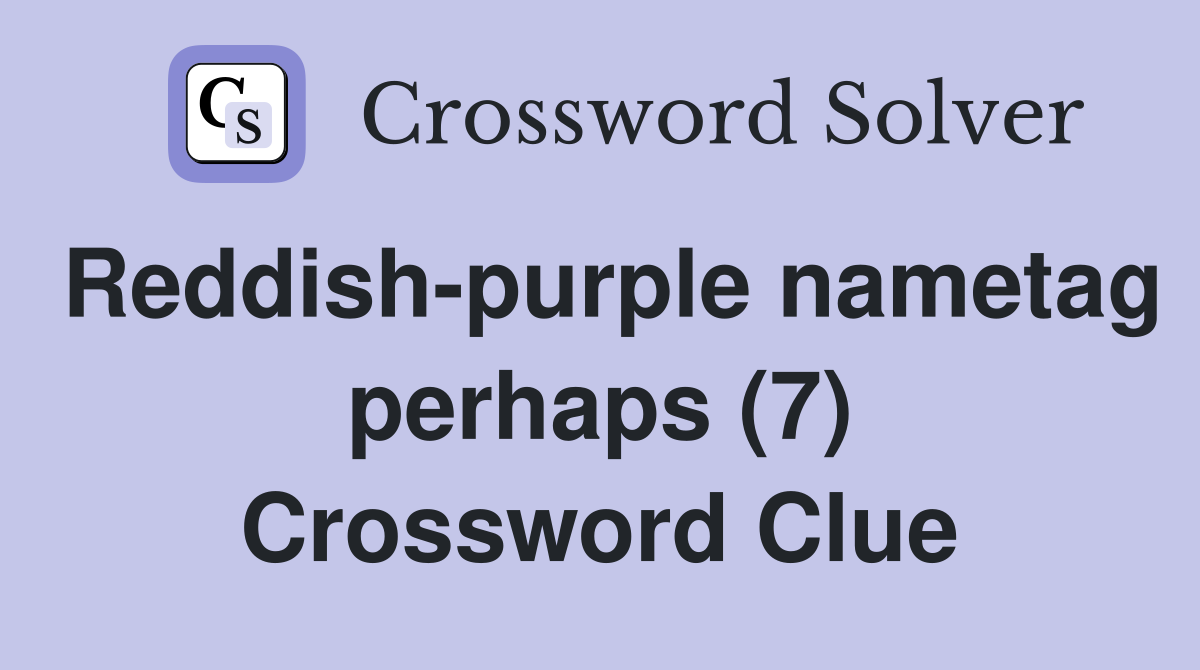 Reddishpurple nametag perhaps (7) Crossword Clue Answers Crossword