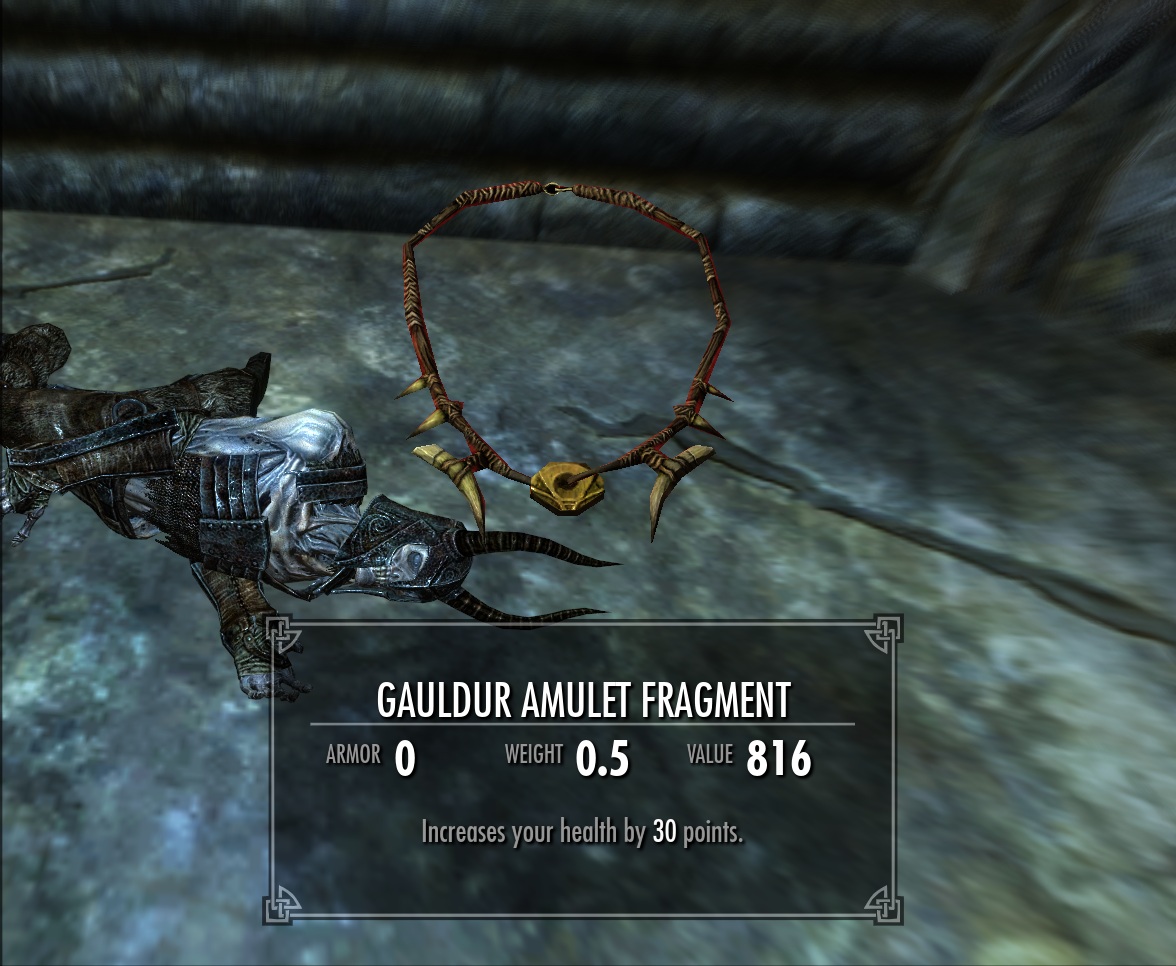 Skyrim in which the dragonborn must recover the separated fragments of the gauldur amulet from various ancient nord ruins to be reforged and defeat the bound spirits of the. Reforge the gauldur amulet with all three pieces of the amulet in your possession it is now time to reforge them! Take the ivory dragon claw from his robes and leaf.