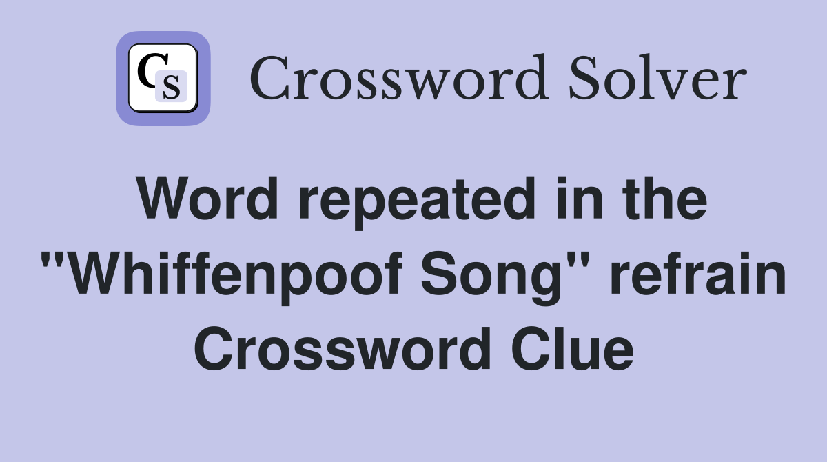 Word repeated in the "Whiffenpoof Song" refrain Crossword Clue