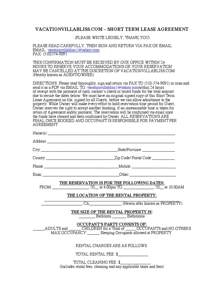 Rental Arbitrage Lease Agreement Template