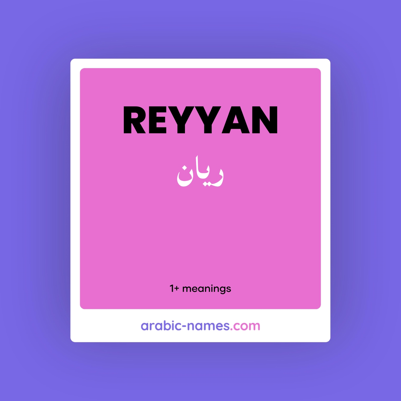 Find the meaning of name reyyan (ريان) in arabic & english. Reyyan is a girl name, meaning in turkish origin. The name reyyan is of arabic origin and is commonly used as a feminine given name. It holds several meanings, including sweet.
