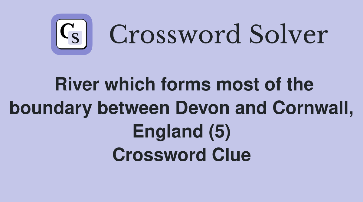 Answers for river in england crossword clue, 4 letters. Here is the answer for the crossword clue rivers, in england. See the list of rivers and their. Know another solution for crossword clues containing river in england? The crossword solver finds answers to.