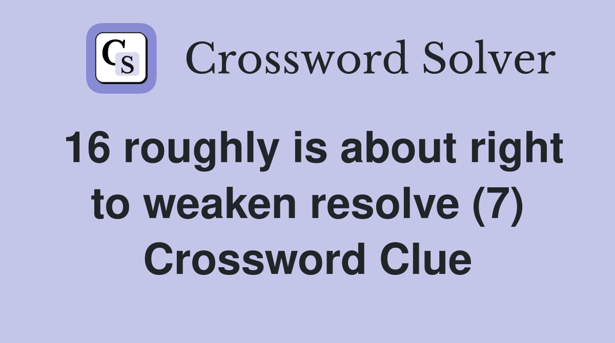 16 roughly is about right to weaken resolve (7) Crossword Clue