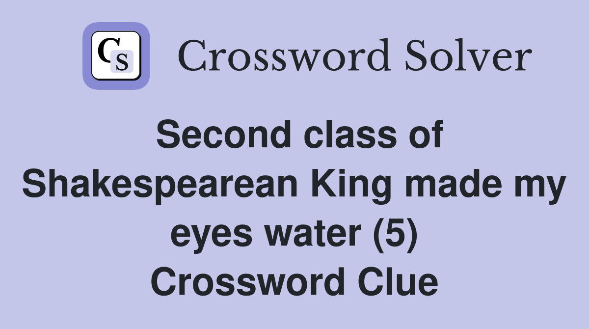 Second class of Shakespearean King made my eyes water (5) Crossword