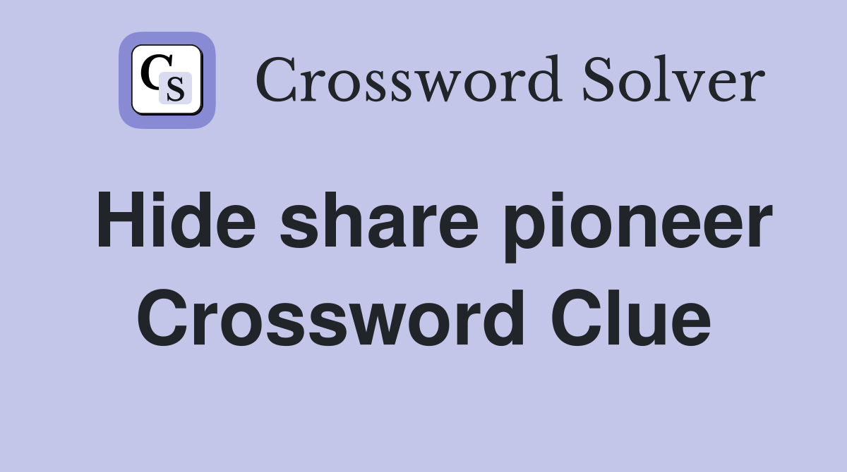 Hide share pioneer Crossword Clue Answers Crossword Solver