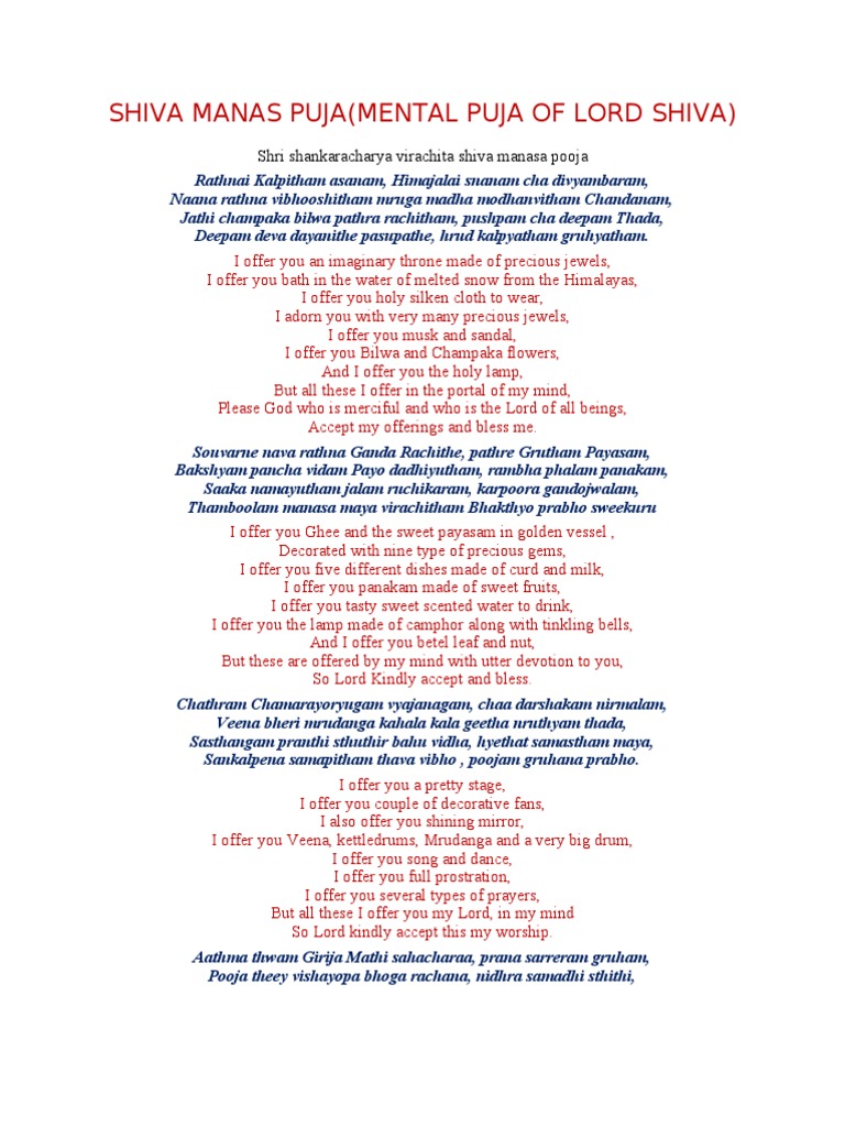 I bathe you in cool. (o pashupati, please accept my mental worship of you) i offer an asanam (seat) studded with gems for you to sit on; Shiva manasa pooja the mental worship of shiva. By sankaracharya translated by p. Shiv manas puja is a devotional prayer and hymn for lord shiva which can easily surrender the devotee in the.