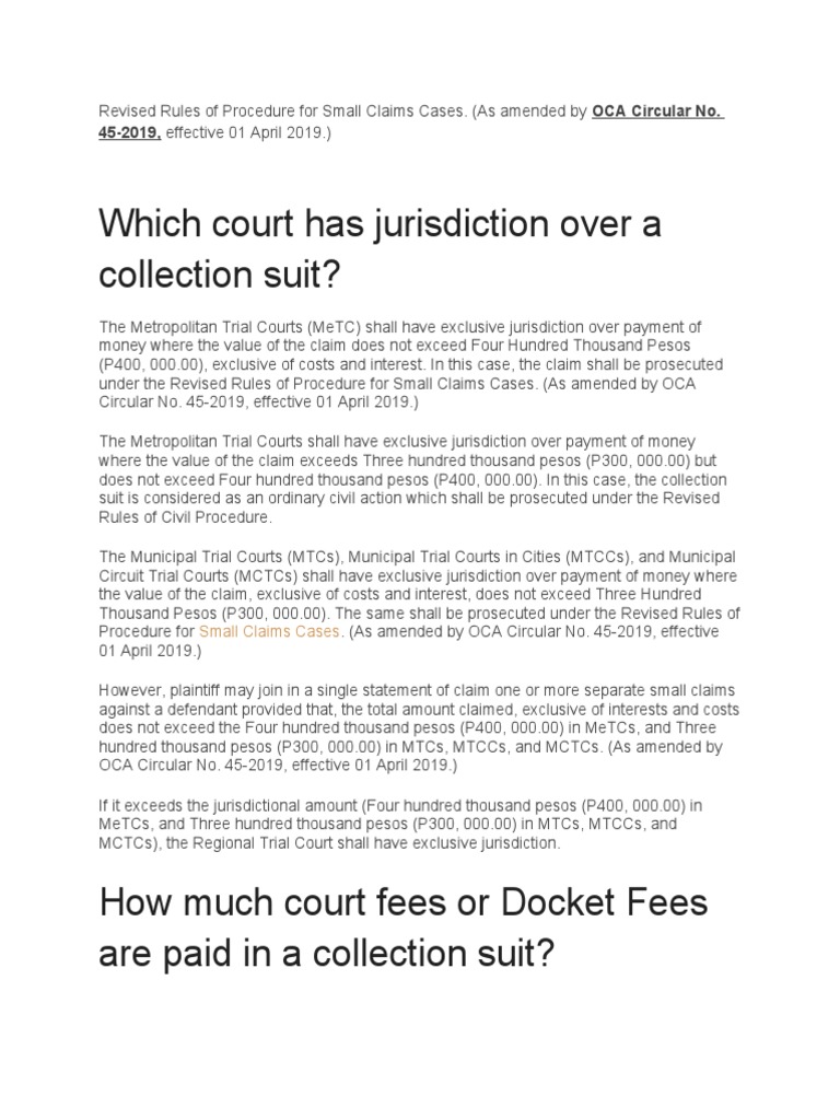 Revised Rules of Procedure For Small Claims Cases PDF Lawsuit
