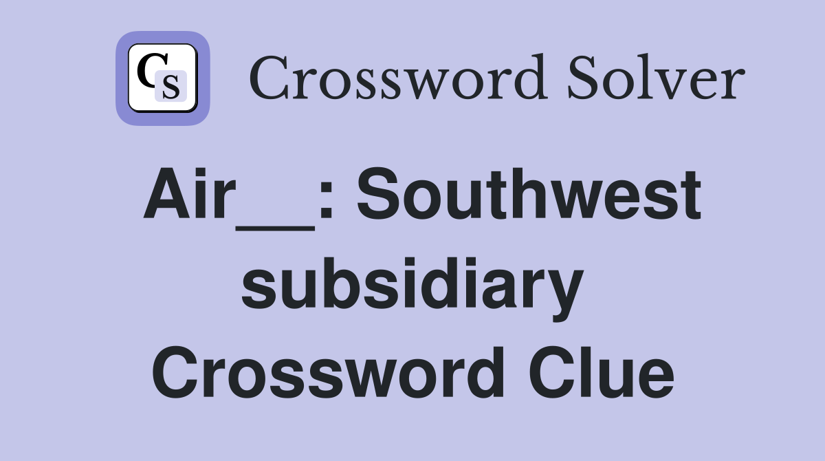 Here is the answer for the crossword clue air__: Are you stumped by the air__: Answers for southwest subsidiary crossword clue, 4 letters. Here is the answer for the crossword clue former southwest subsidiary last seen in la times. Search for crossword clues found in.