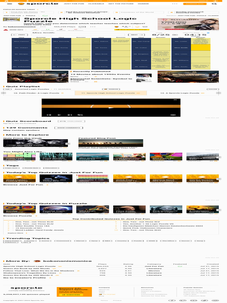 Sporcle High School Logic Puzzle Quiz Download Free PDF Games Of