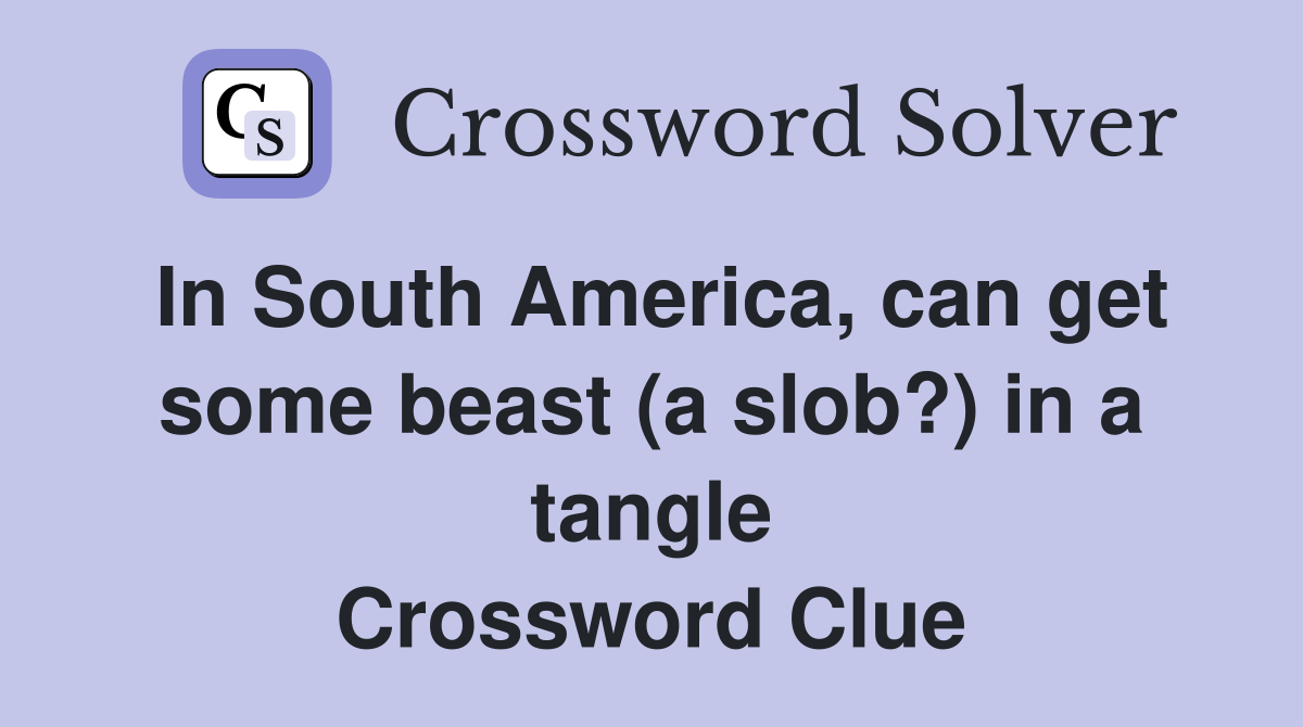 In South America, can get some beast (a slob?) in a tangle Crossword