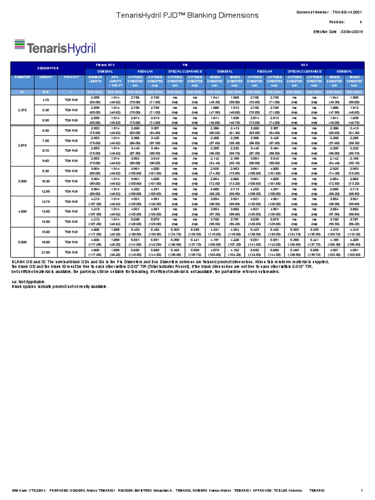 Tenaris Hydril PJD Dimensions PDF Manufactured Goods