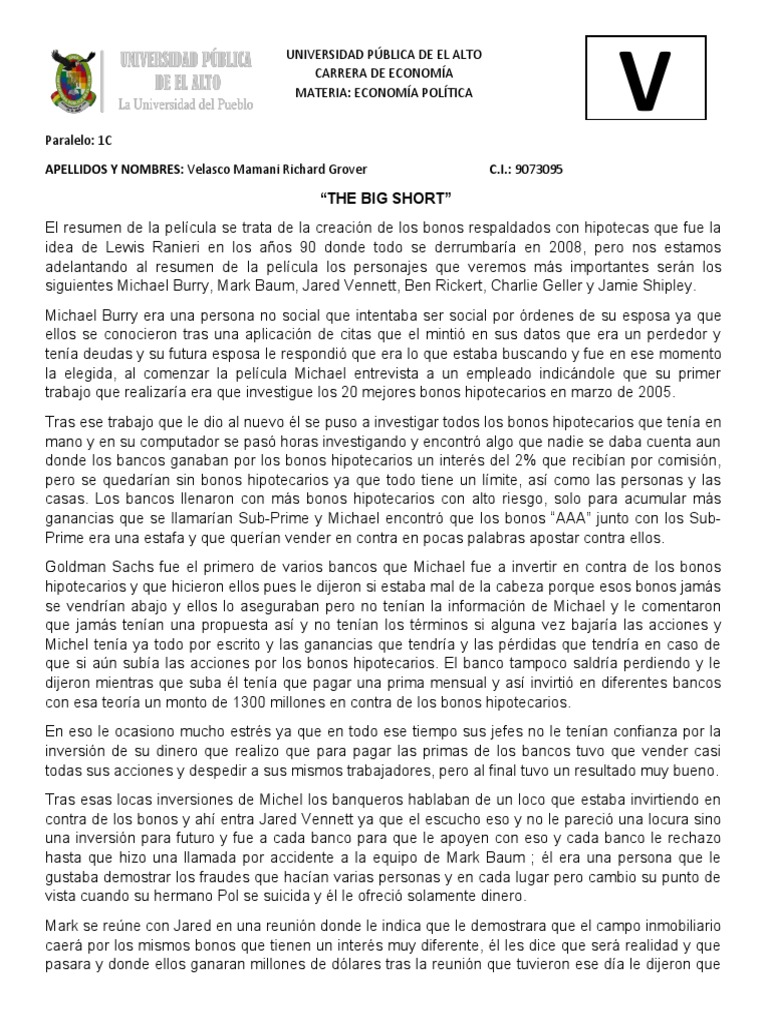 The Big Short Script - To make large sums of money. 1985 a middle school football game is in progress. The big short 8 ext. (imitating explosion) within a few years they. It was a fucking snooze! In 2008, wall street guru michael burry realizes that a number of subprime home loans are in danger of defaulting. Read, review and discuss the the big short script in pdf format on scripts.com Treasury bonds or utility stocks? So when they were wrong, they were wrong small, but when they were right, they were right big. Burry bets against the housing market.