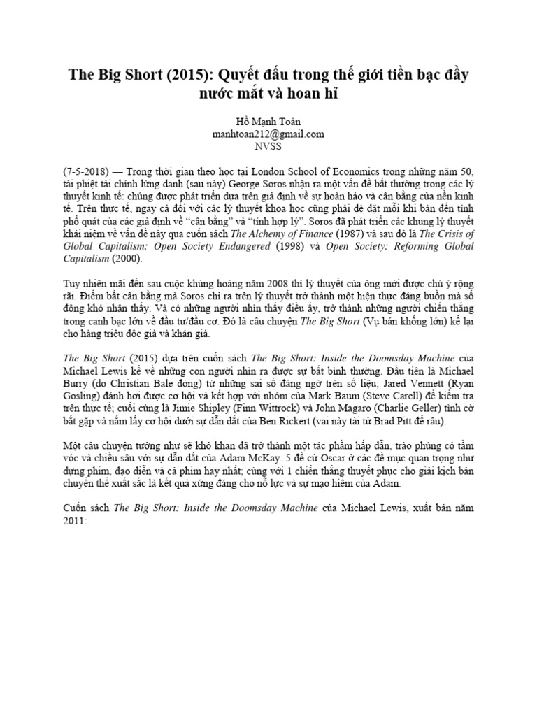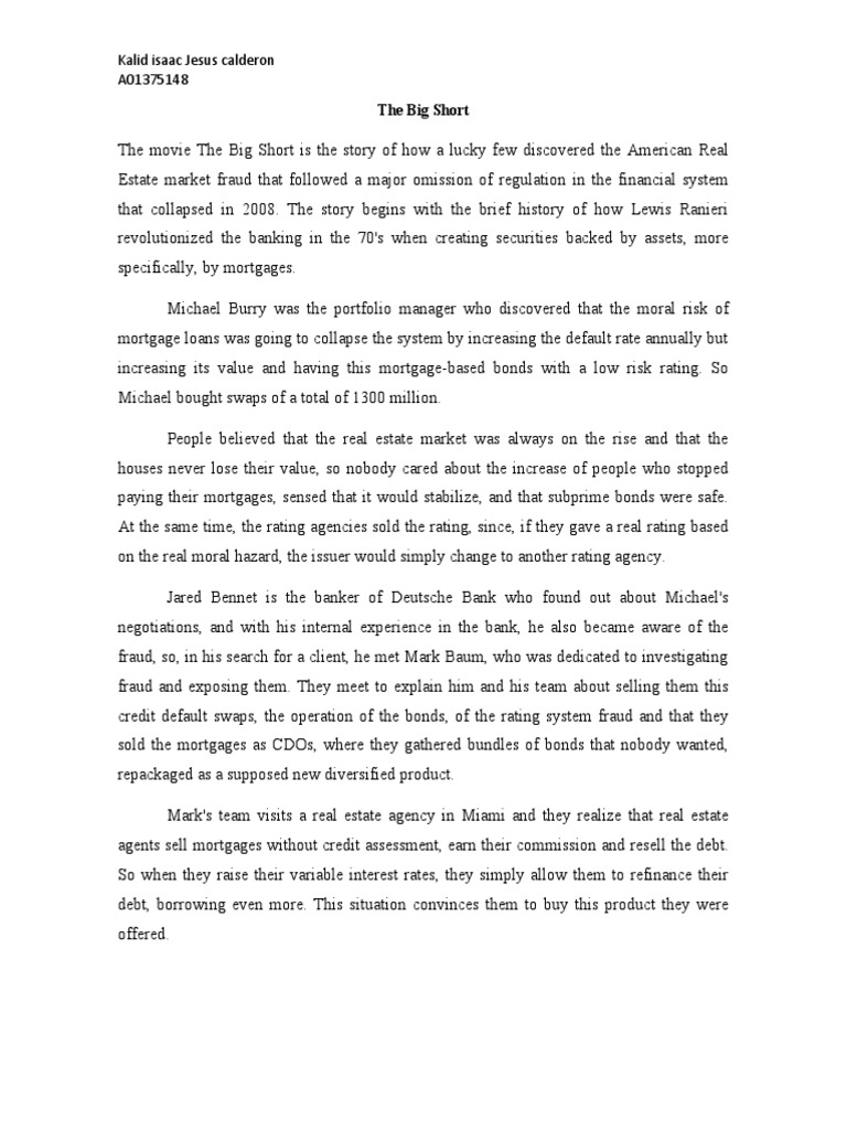 The Big Short Movie Review Download Free PDF Investing Economies