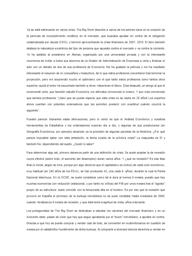 The Big Short Descargar gratis PDF Economias
