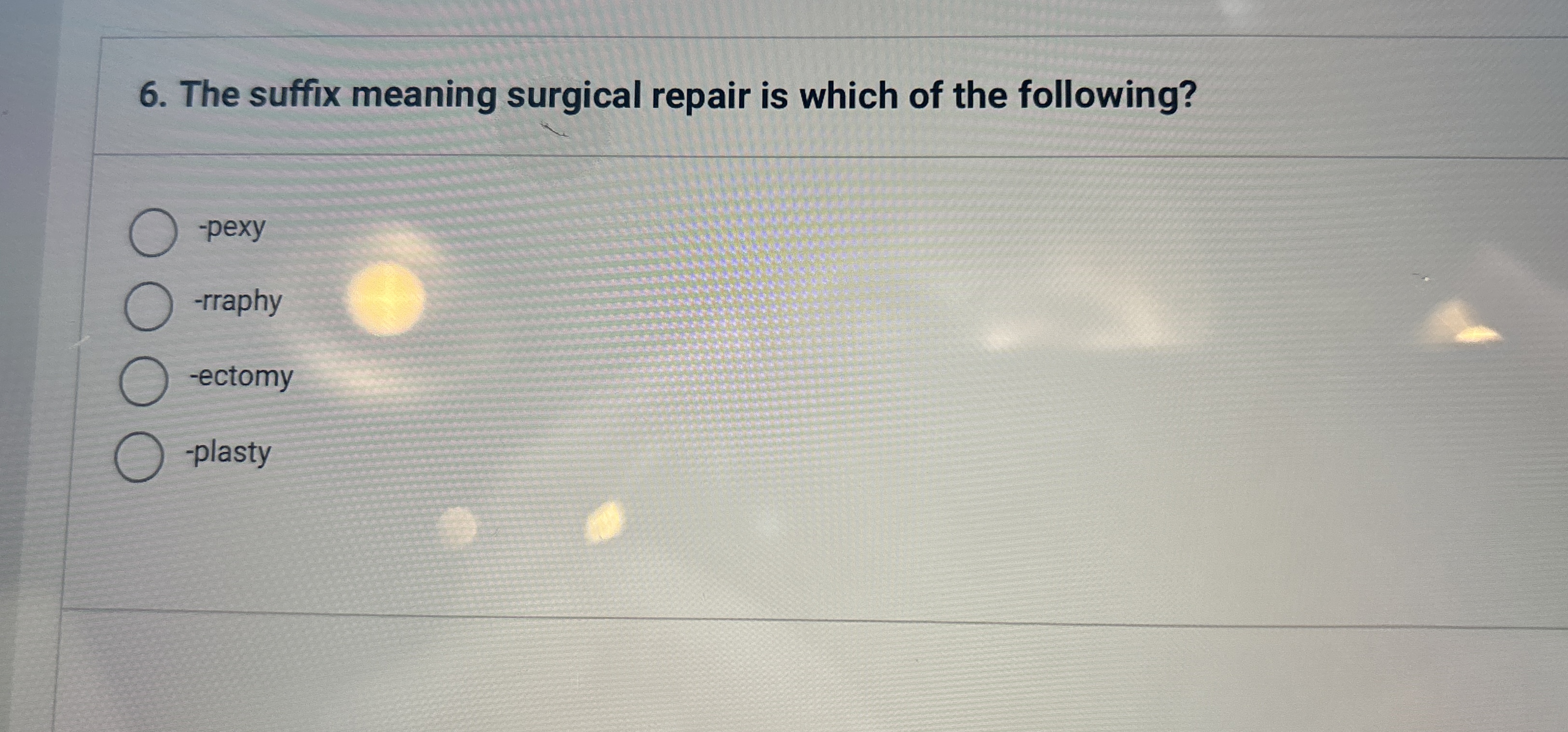 Solved The suffix meaning surgical repair is which of the