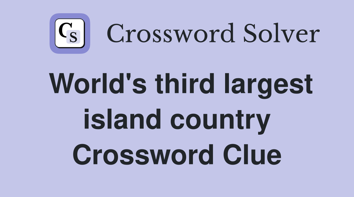 We have found 40 possible. Here is the answer for the crossword clue third largest island of the world. The crossword solver found 30 answers to world's third largest island, 6 letters crossword clue. The crossword solver found 30 answers to worlds third largest island, 6 letters crossword clue.