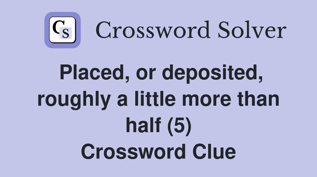 Placed, or deposited, roughly a little more than half (5) Crossword