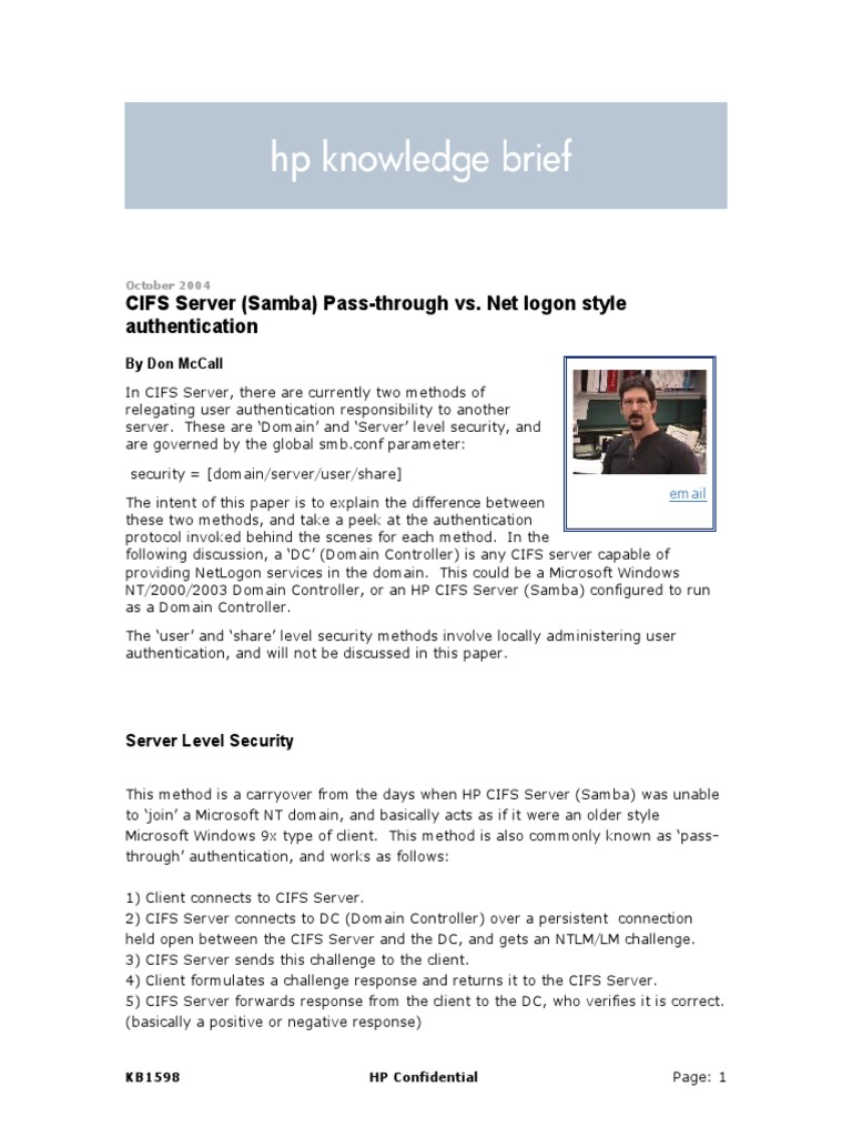 KB1598Cifs Server Passthru Vs Net Logon Style Authentication PDF