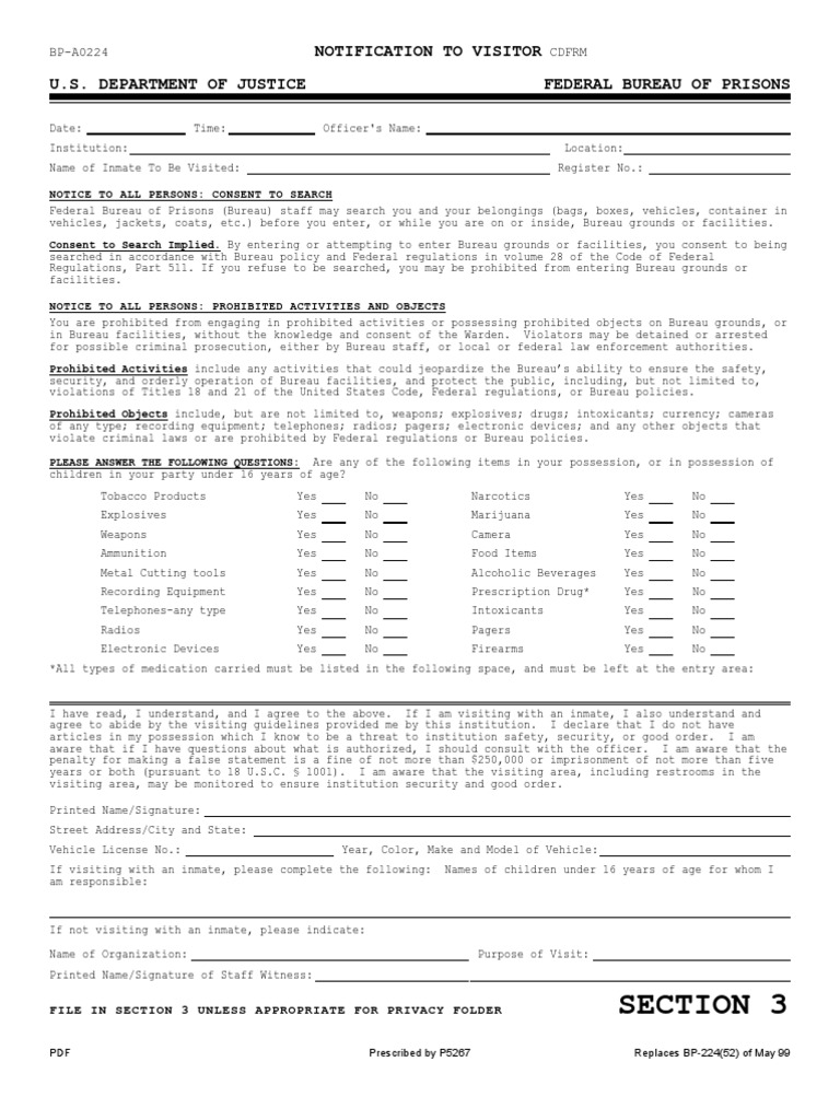 Visitor Form For Prison - Instructions for visitors filling out this application this is an application to visit a prisoner in a michigan correctional facility. We have compiled all of the available state inmate. Inmate completes their portion of the form and mails a. Once you have located your inmate online you can begin to fill out a visitors application. An inmate is given a visitor information form when he/she arrives at a new facility.