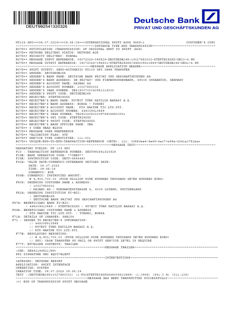 MT103 Gpi SemiAutomatic Kaibac Ag To KTS 06.07.2023 4.9M PDF