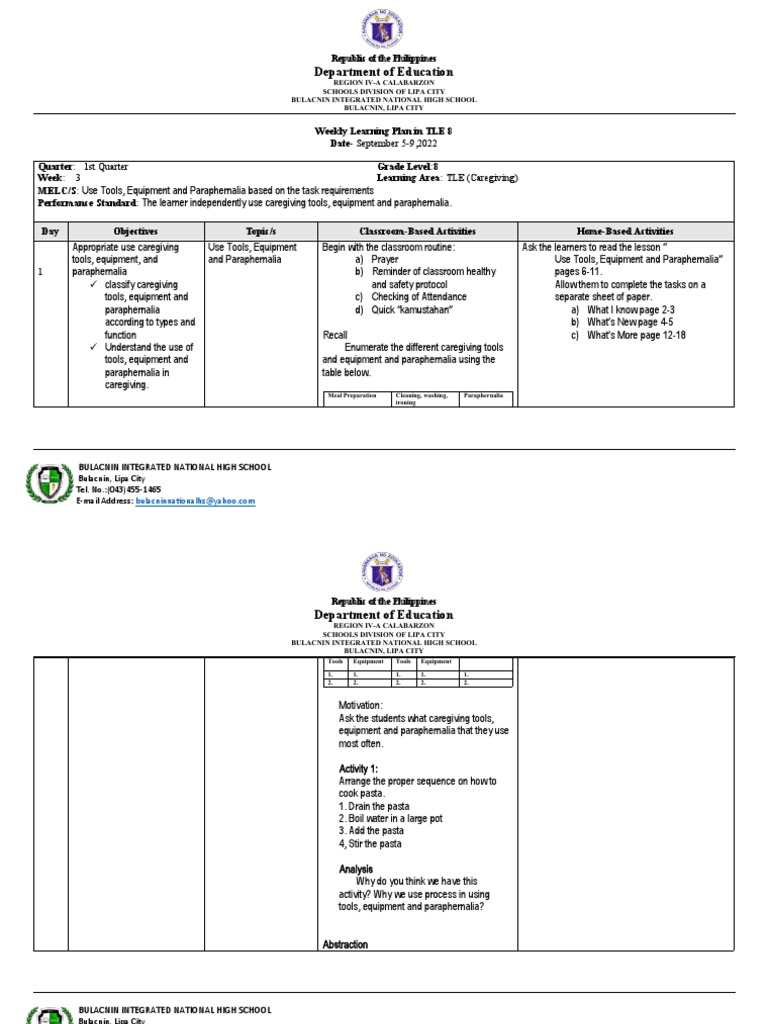 Caregiving TLE Week 3 PDF Education Theory Cognitive Science