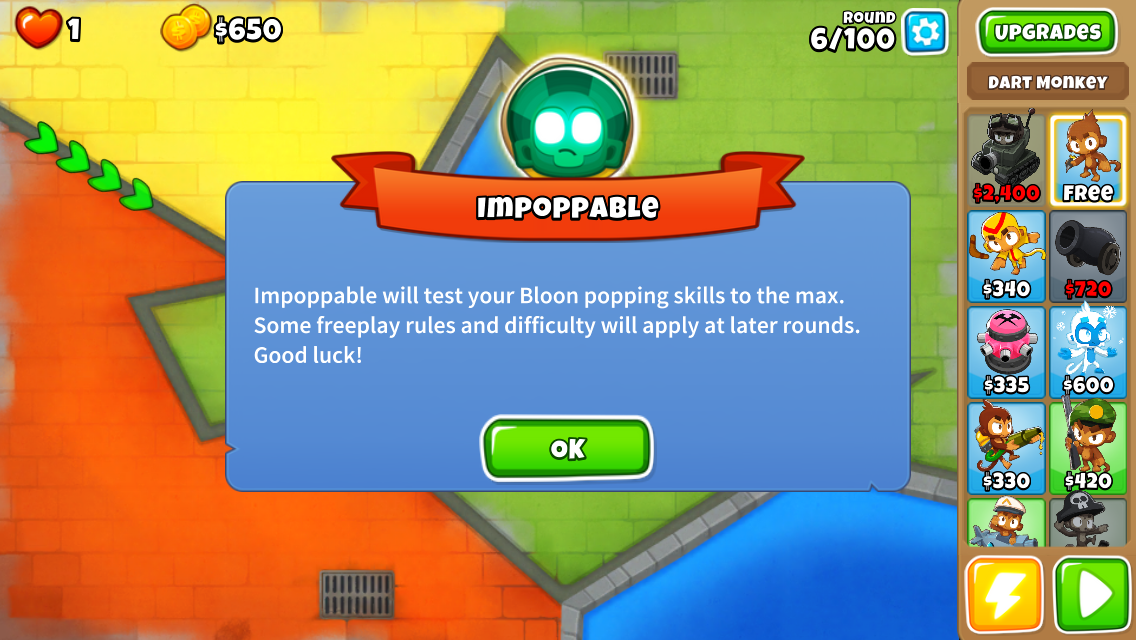What Is Impoppable Btd6 - Complete alternate rounds on hard mode for the map you want to play impoppable on. However, it doesn’t mean that you. The impoppable difficulty mode in bloons td 6 is quite hard. Impoppable is a game mode in bloons td 6. What is different about impoppable? When it comes to your strategy for impoppable, you will want to focus on building up. The most accurate name in bloons td 6 just might be impoppable. How to beat impoppable in bloons td 6. Each map in bloons td 6 has three different difficulty levels — easy, medium, and hard. Each level also has a few different types of game.